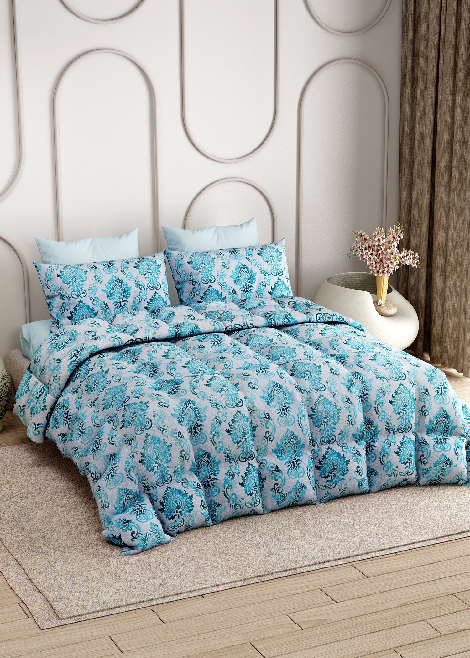 No more mixing and matching. This king size cotton bedding set includes everything you need for a perfectly dressed bed—comforter, bedsheet, and pillow covers—saving you time while upgrading your space instantly.